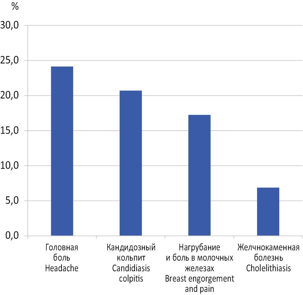 Рис. 2. Осложнения пероральной менопаузальной гормональной терапии в контрольной группе