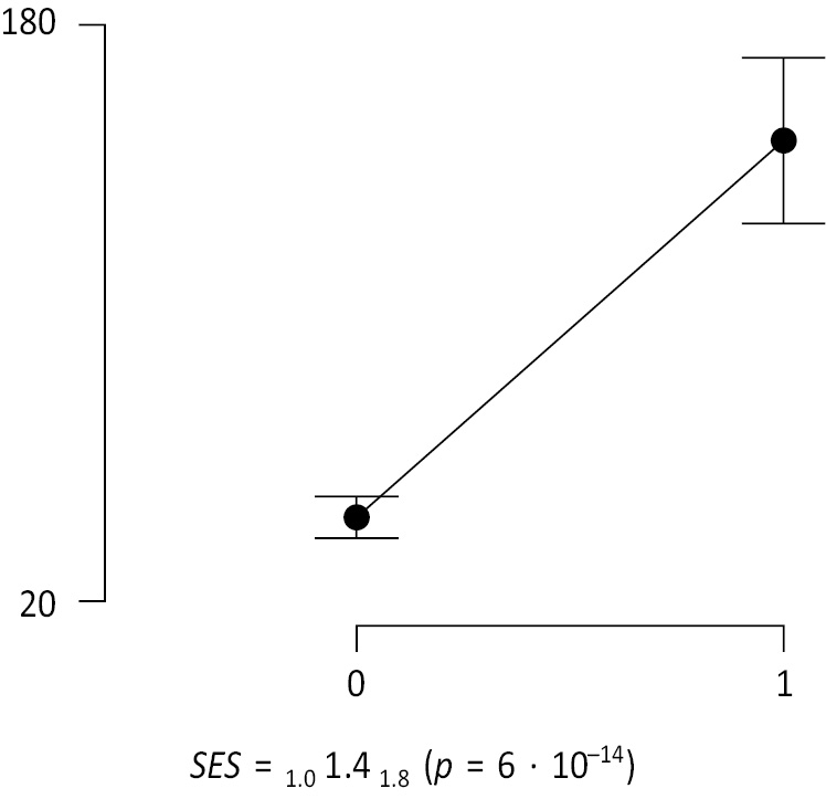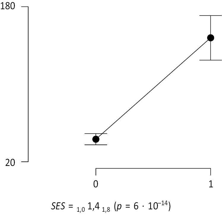 Примечание. SES — стандартизированный размер эффекта. 95 % ДИ указан в виде подстрочных индексов.