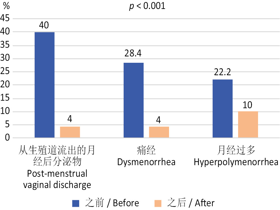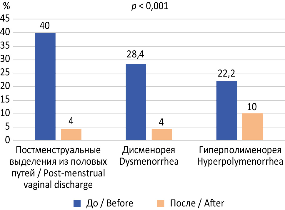 Fig. 3. Dynamics of patient complaints of menstrual disorders after metroplasty