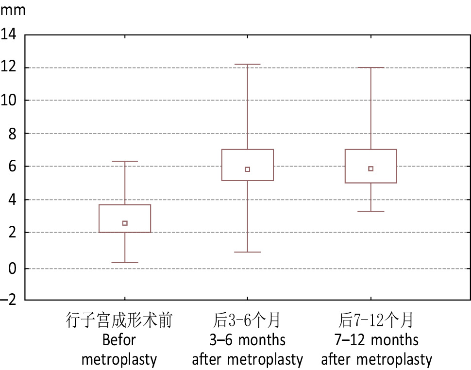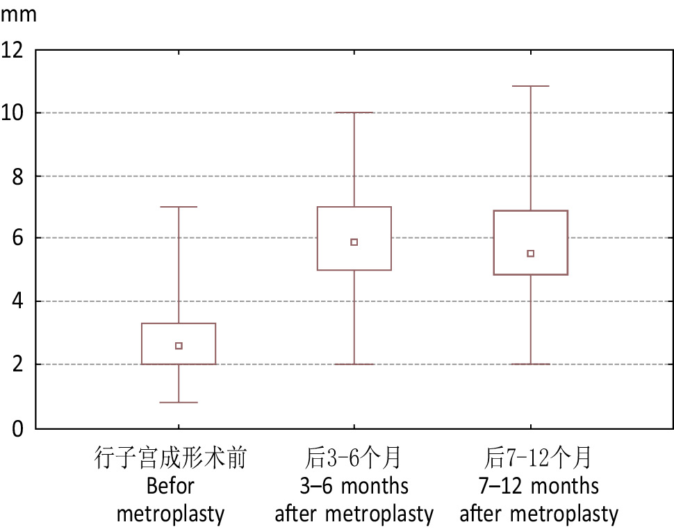 Fig. 5. Dynamics of the uterine scar thickness measured by magnetic resonance imaging