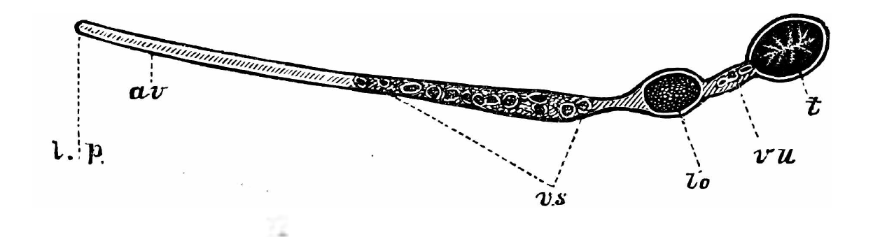 между листками lig. lati, причемъ придатко-яичковая часть сохраняется гораздо рѣзче и уже давно извѣстна подъ именемъ Parovarium'a—придатка яичника или органа Rosenmüller'а. Waldeyer, желая сохранить и въ названіяхъ параллель между соотвѣтственными органами обоихъ половъ, предлагаетъ, давъ названіе яичнику oophoron, называть parovarium ерооphoron'омъ въ параллель съ epididymis мужчины, а примордіально-почечную часть Вольфова тѣла, соотвѣтствующую paradidymis мужчины, обозначить какъ paroophoron. Эта номенклатура, предложенная Waldeyer’омъ въ 1870 году (Eierstock und Ei), не привилась вполнѣ, остался только терминъ paroophoron, обозначающій остатки примордіально-почечной части Вольфова тѣла; другая же часть его, извѣстная уже ранѣе подъ именемъ parovarium, сохранила это свое названіе и терминъ epoophoron къ ней не привился 1). Въ дальнѣйшемъ изложеніи и я буду придерживаться этихъ двухъ терминовъ и обозначать какъ parovarium—бывшую придатко-яичковую часть Вольфова тѣла и paroophoron— остатки примордіально-почечной части.
