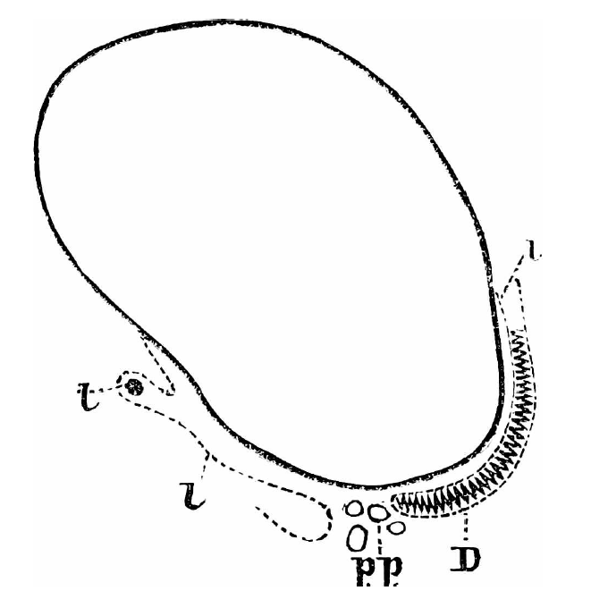 Рис. 1. Женскіе половые органы человѣческаго зародыша 9,0 ctm. длины. (Waldeyer.)