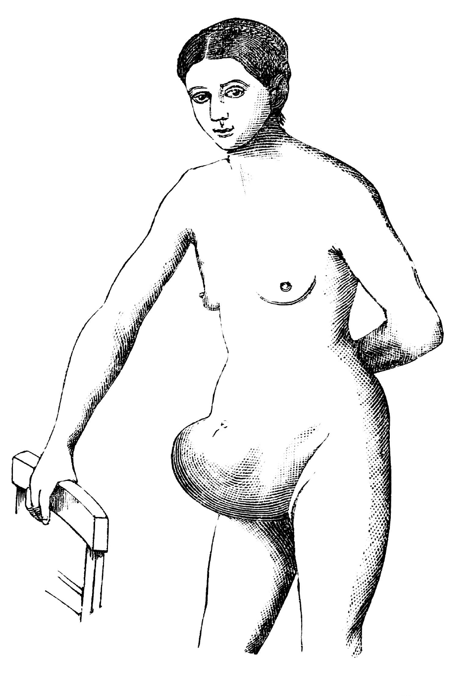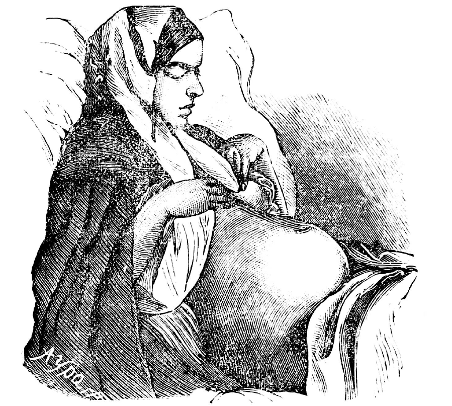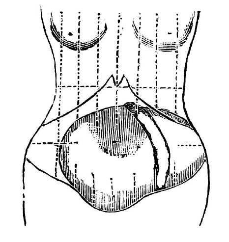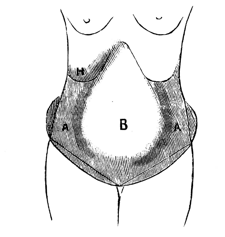 Fig.: 14. The shape of the abdomen with flatulence in a hysterical girl (Spencer Wells).