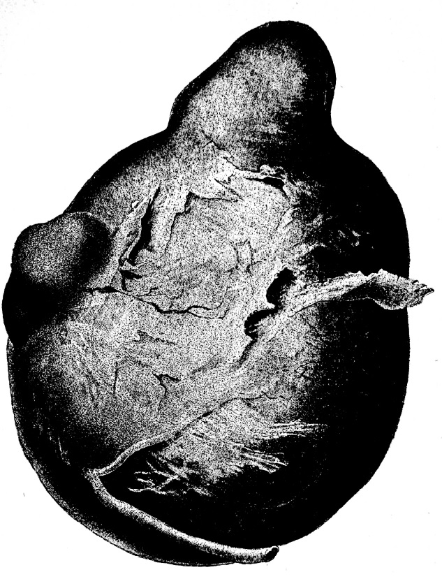 Рисунокъ № 1.—Мѣшокъ гидронефроза съ выпячиваніями послѣ вылущенія