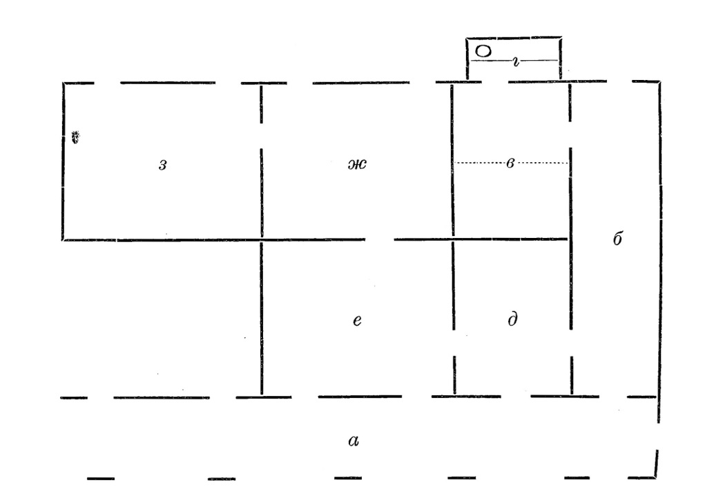 Ради ясности, будемъ придерживаться плана, и такъ: изъ общаго корридора а, огибающаго собою все зданіе больницы, и зимой, не взирая на усердное отопленіе, довольно прохладнаго, ведетъ дверь въ другой небольшой корридоръ, соединяющій задній дворъ больницы съ общимъ корридоромъ. Изъ этого маленькаго корридора б, зимою еще болѣе холоднаго, благодаря наружной двери, одна дверь ведетъ въ палаты родильнаго отдѣленія, другая—въ ванную и вмѣстѣ съ тѣмъ въ пріемную для роженицъ комнату, которая граничитъ непосредственно съ холоднымъ ватерклозетомъ, (здѣсь кстати замѣтить, что этимъ ватерклозетомъ наши родильницы не пользуются, и всѣ ихъ выдѣленія выносятся въ судкахъ служанками). Комната эта въ высшей степени неудобна; она темна, освѣщаясь днемъ только чрезъ отворенную дверь, идущую въ корридоръ, и до невозможности тѣсна,—въ ней едва помѣщается одна ванна, съ установленнымъ здѣсь же кубомъ и деревянный топчанъ, покрываемый клеенкой и простыней во время перваго осмотра роженицъ. Первая, маленькая палата д, вмѣщая въ себѣ двѣ койки, предназначенныхъ нами для лихорадящихъ родильницъ, имѣетъ характеръ quasi изоляціонной комнаты; говоримъ — quasi, потому что она кромѣ того служитъ и кабинетомъ ординатору, и его раздѣвальной и комнатой для купанья новорожденныхъ, и умывальной для врачебнаго персонала,—такъ много функцій въ такомъ маломъ объемѣ! Затѣмъ слѣдуютъ палаты е и ж для родильницъ; въ первой 4 кровати, во второй—6; и наконецъ, родильная комната з съ тремя кроватями для нормальныхъ родовъ и операціоннымъ столомъ; тутъ же помѣщается деревянный крашенный шкафъ для инструментовъ и небольшой столъ для храненія банокъ съ пуповинными лигатурами, съ іодоформенной марлей, растворами lysol’я и acidi carbolici и прочими необходимыми принадлежностями во время родовъ 1).