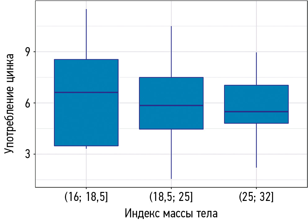 Obesity and its related nutritional deficiencies should be further explored to determine the causes of the formation of a premorbid background during pregnancy. Studies have shown that low Zn consumption and a decrease in its level in the blood serum are correlated with an increase in the prevalence of obesity and diabetes mellitus [2, 34, 35]. In our study, we did not reveal a strong correlation between dietary Zn deficiency and obesity (Figure) probably because of the stimulation of zinc-dependent processes of insulin resistance and obesity, which lead to impaired Zn metabolism. Even with normal Zn consumption with food, the degree of expression of zinc-containing transport proteins is not affected, so the therapeutic doses of Zn should be prescribed. We believe that the effect on the regulation of Zn homeostasis should be considered as a possible therapeutic target in the presence of obesity and associated obstetric complications, such as gestational diabetes mellitus, PE, and stillbirth. As such, this issue should be further studied.
