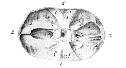 Другихъ какихь-либо перегородокъ на внутренней сторонѣ черепной крышки не имѣется.