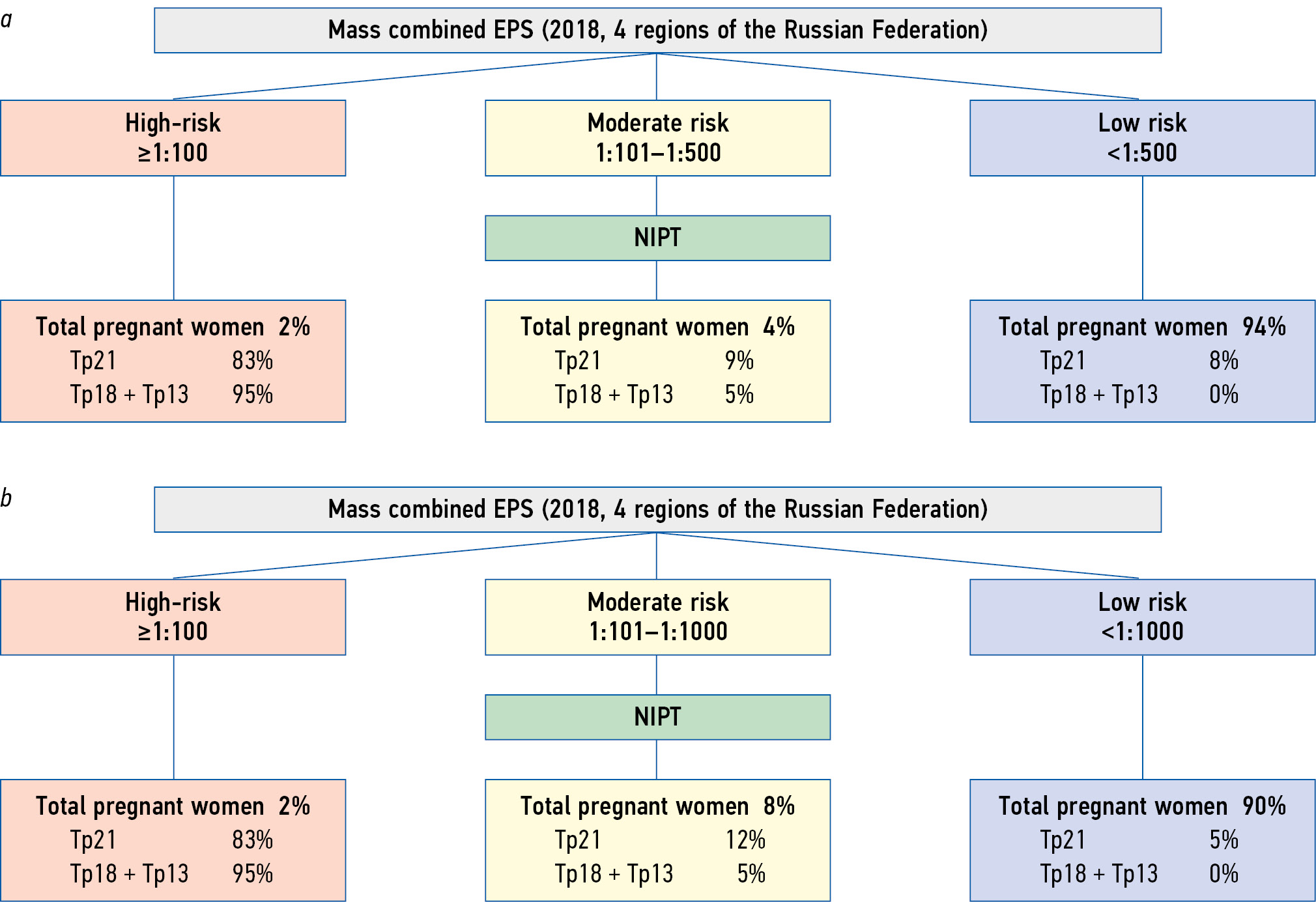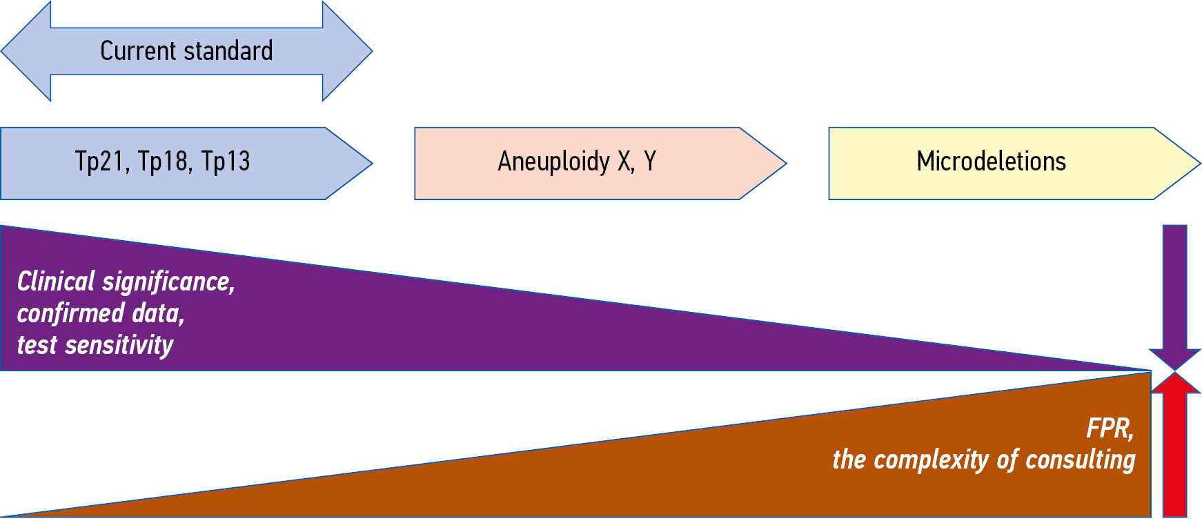 As for the terminology, NIPT or NIPS, based on the foregoing about the screening purpose of this test, it seems logical that there is no significant difference between these definitions. Foreign recommendations [17] usually use the terms “screening test for extracellular DNA” or NIPS because they unambiguously define the assignment of this test as a screening test, whereas, the term NIPT has become more widespread in scientific, popular literature and the internet. In the future, we will use the term NIPT, which is more familiar to the Russian-speaking audience.