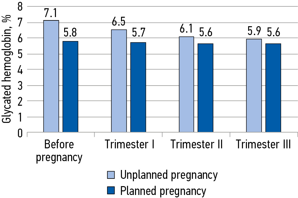 Figure. Dynamics of the level of glycated hemoglobin A1c during pregnancy