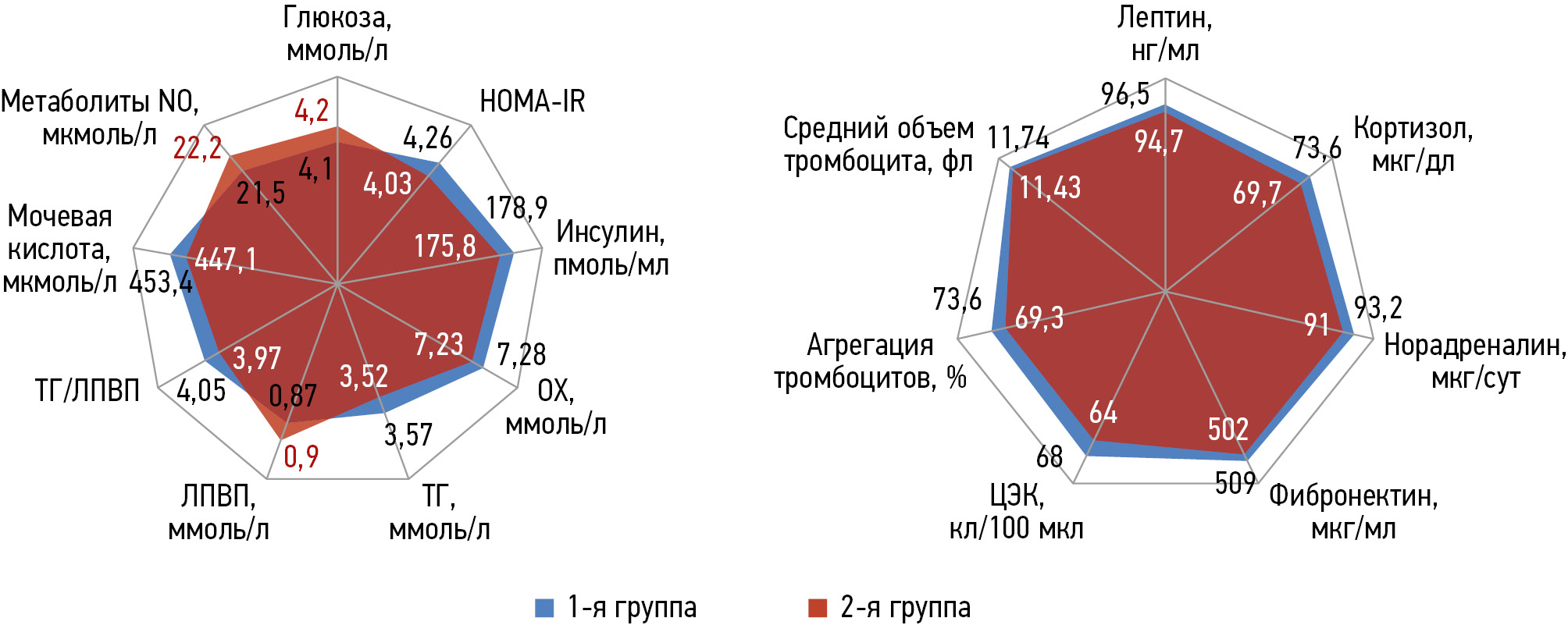 The criteria for inclusion in groups 1 and 2 were the presence of PE in pregnant women with independent high-risk factors; pre-pregnancy blood pressure levels <130 and <85 mm Hg, body mass index 18.5–24.9, and absence of metabolic disorders; and provision of consent to participate in a prospective study and publication of the results. The exclusion criteria were impairment of carbohydrate metabolism before pregnancy; PE complicated by HELLP syndrome, acute renal failure, premature detachment of the normally located placenta, respiratory distress syndrome in adults, and acute cerebrovascular accident; gestational diabetes mellitus; severe somatic, infectious, and autoimmune pathology; polycystic ovary syndrome; genital anomalies and congenital fetal abnormalities; pregnancy after the use of assisted reproductive technologies; and violation of the examination protocol.