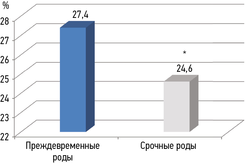 Currently, there is a steady increase in the frequency of multiple pregnancies, which are associated with the widespread use of assisted reproductive technologies. Pathological multiple pregnancies at all stages of gestation are associated with a considerable increase in the frequency of obstetric complications, surgical delivery, and a high level of perinatal losses [1]. Preterm delivery (PD), in turn, most often complicates multiple pregnancies. In addition, about 40% of multiple pregnancies are induced PD (based on medical necessity for the mother and fetuses) and 60% are spontaneous PD.