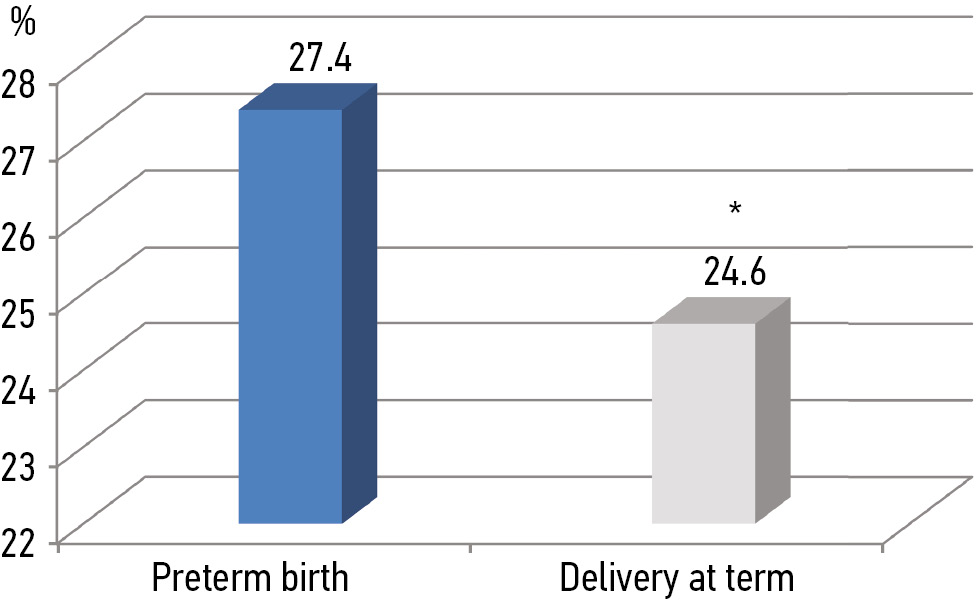 Type of delivery | Spontaneous preterm delivery (n = 24, m = 48) | Spontaneous delivery at term (n = 22, m = 44) | p-value |