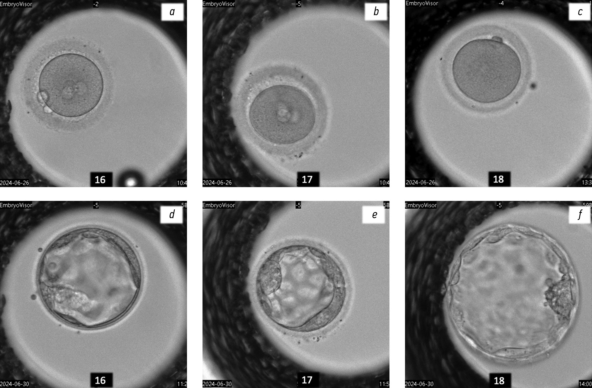 Materials and methods: The material for the study was 18 donor embryos obtained after fertilization of donor oocytes with donor sperm. The embryos were cultured for 140 hours in an EmbryoVisor time-lapse incubator (Westtrade Ltd., Russia).