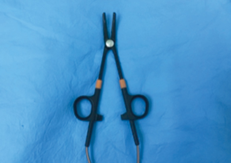 Пациенткам основной группы проводили хирургическое лечение методом модифицированного кольпоклейзиса [29]. Начальным этапом данным пациенткам выполняли влагалищную гистерэктомию с использованием электрохирургических методов гемостаза. Она включает стандартные шаги: радиальное рассечение слизистой оболочки влагалища на уровне сводов влагалища, смещение мочевого пузыря и прямой кишки краниально, вскрытие пузырно-маточной складки, переднюю кольпотомию. После задней кольпотомии поэтапно пересекали крестцово-маточные, кардинальные связки, маточные сосуды [30]. Электролигирование осуществляли биполярным инструментом, оснащенным обратной связью с электрогенератором. Биполярный зажим — многоразовый инструмент для лигирования сосудов в открытой хирургической операции с минимальным термическим распространением, благодаря многослойной конструкции рабочей части бранш типа «сэндвич». Зажим быстро и безопасно коагулирует артерии, вены и массивы тканей диаметром до 7 мм, а особое антипригарное покрытие не дает прилипнуть обрабатываемым тканям на рабочую поверхность (рис. 1).