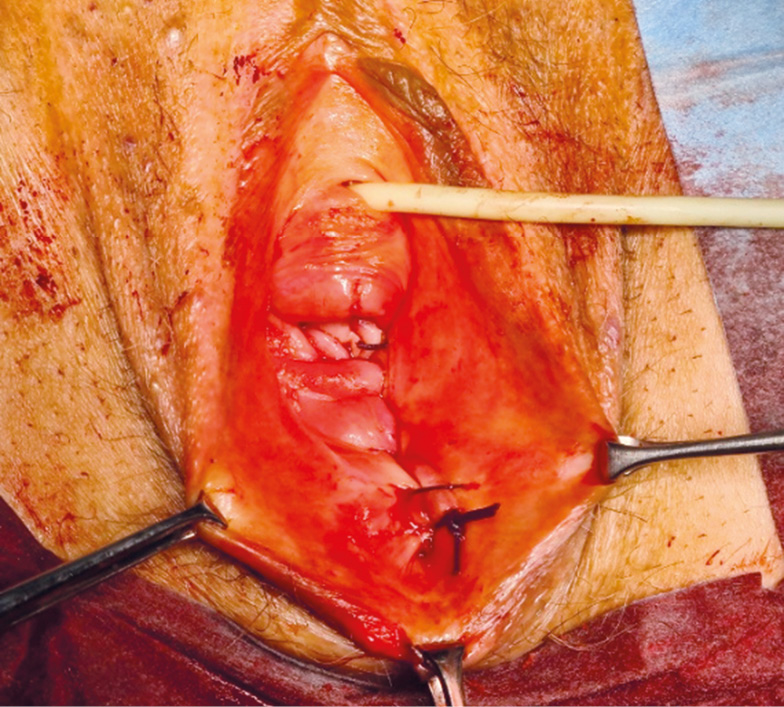 Рис. 6. Ушивание раны слизистой оболочки влагалища