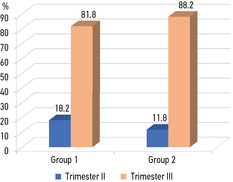The patients did not significantly differ in age and parity, although multiparous were slightly more in group 1 than in group 2 among the analyzed cases.