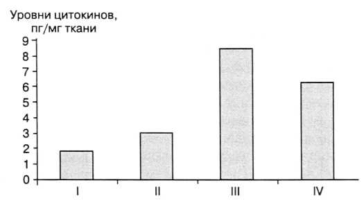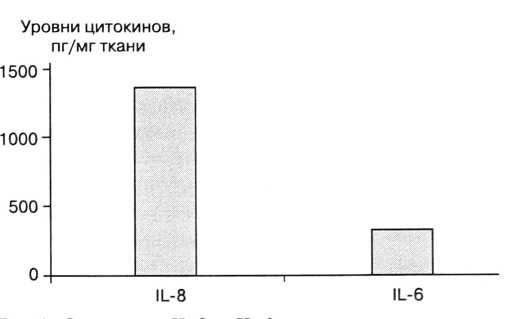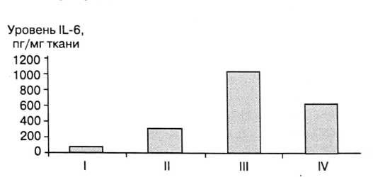 Учитывая тот факт, что ИЛ-6 является антагонистом ИЛ-1в и TNF, синхронное повышение продукции этих цитокинов можно рассматривать как компенсаторную реакцию, направленную на снижение уровня продукции провоспалительных цитокинов, попытку сохранения баланса в цитокиновой сети.