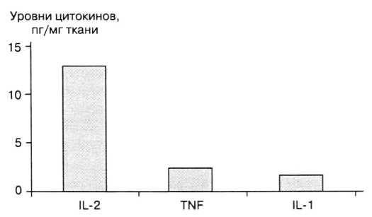 IL-I является одним из главных медиаторов, ответственных за развитие местной воспалительной реакции. Местная воспалительная реакция хотя и усиливается при переходе от «малых» форм НГЭ к более «тяжелым», но, возможно, является недостаточной для регресса болезни.