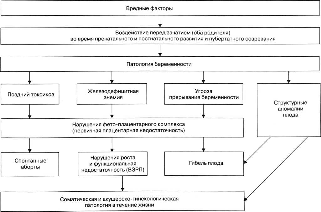 Механизм повреждающего действия вредных факторов на развивающийся плод схематически представлен на рис. 5.