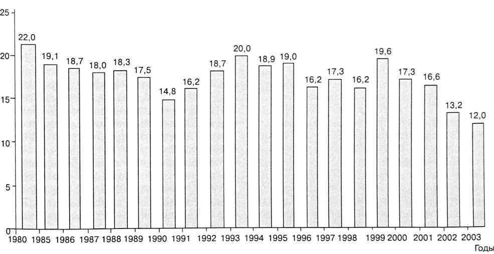 Рис. 4. Динамика младенческой смертности в Волгоградской области (на 1000 родившихся живыми)