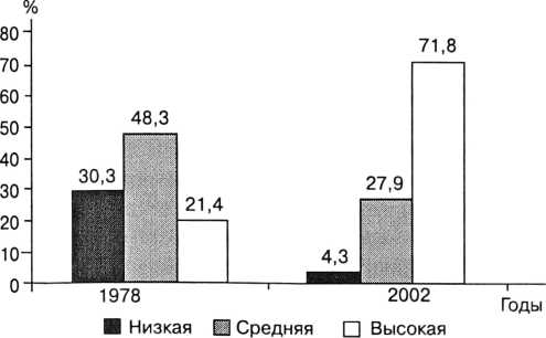 В связи с этим в 3 раза возросла (рис. 9) по численности группа женщин высокого риска по акушерской патологии во время гестации и в родах, которая составила в регионе в начале 2000-х годов 71,8% (в 70-е годы — 21,4%).