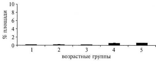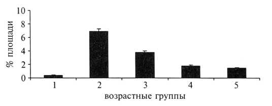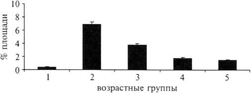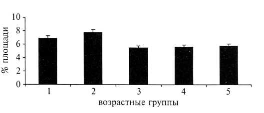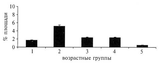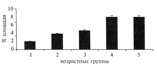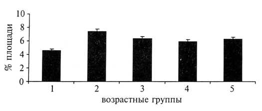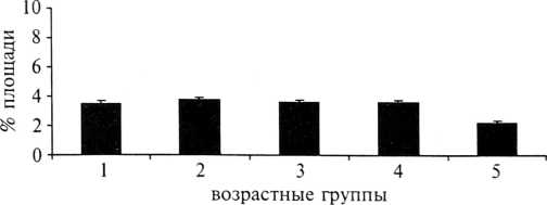 Рис. 14. Площадь экспрессии Мс1—1 в плацентах беременных различных возрастных групп