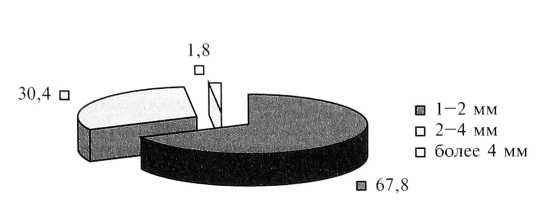 Рис. 2. Степени асимметрии стенок матки у пациенток с ВРВМ, %