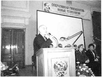 - директор Научного центра акушерства, гинекологии и перинатологии РАМН, главный акушер-гинеколог М3 и СР РФ, президент Российской ассоциации акушеров-гинекологов, президент Российской ассоциации гинекологов-эндоскопистов, заведующий кафедрой акушерства, гинекологии и перинатологии ФППО Московской медицинской академии им. И.М. Сеченова, академик РАМН, з. д. н. профессор Кулаков В.И. — «Хирургическая коррекция врожденных пороков плода и новорожденного» (фото 5);