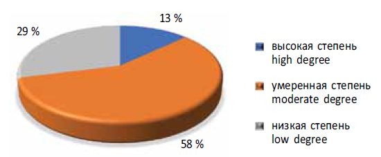 Рис. 1. Удельный вес пациенток с различной степенью тяжести реактивной тревожности