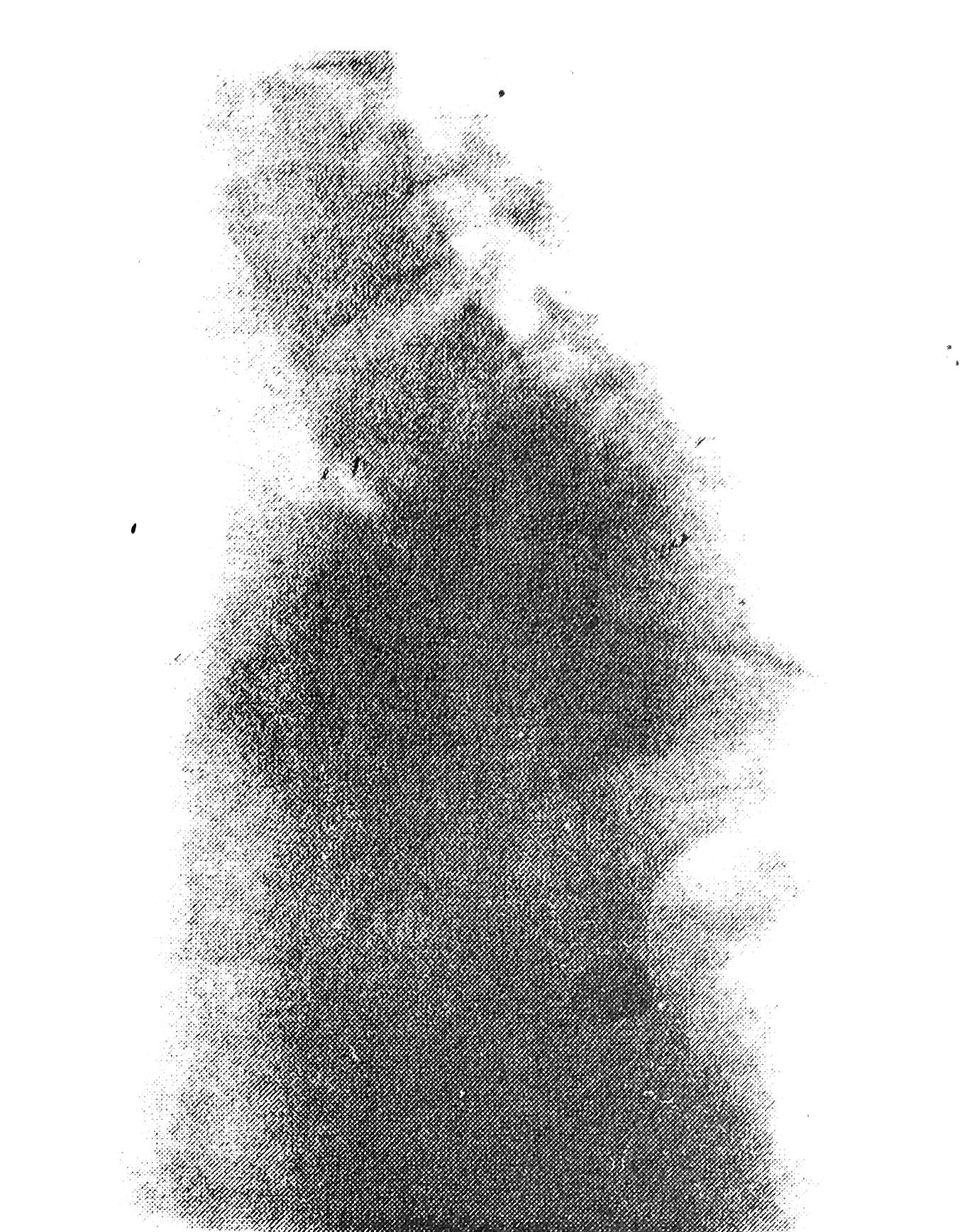 На фоне проводимой интенсивной противошоковой терапии пострадавшей через 40 мин. после поступления выполнена нижнесрединная лапаротомия. При ревизии обнаружено: в брюшной полости около 500 мл гемолизированной крови, париетальная брюшина малого таза гиперемирована. Матка нормальных размеров. В области ее дна ближе к левому трубному углу имеется рана размерами 3.5 х 2.5 см, которая является источником кровотечения. Правый яичник размером 3.5 х 4.0 см с множественными кровоизлияниями, имбибиро- ван кровью. Имеется повреждение сосудов ворот правого яичника и его собственной связки. Левые придатки матки не изменены. Произведен временный гемостаз прошиванием раны матки - Х-образными кетгутовыми швами с наложением зажимов на собственную связку правого яичника. При дальнейшей ревизии обнаружено ранение тонкой кишки в двух местах на протяжении 40 см от илеоцекального угла, а также сквозное ранение сигмовидной кишки. Учитывая проникающее ранение матки, сочетающееся с повреждением правых придатков и ранением тонкой и толстой кишок, тяжесть состояния пострадавшей решено произвести надвлагалищную ампутацию матки с правыми придатками, резекцию тонкой кишки в объеме 15 см с формированием анастомоза «бок в бок», а также выведение поврежденного участка сигмовидной кишки в левую подвздошную область в виде двухствольного ануса, что и было сделано. Учитывая признаки серозного перитонита выполнена интубация тонкой кишки зондом Миллера-Эббота. При неоднократном рентгенологическом исследовании малого таза в двух проекциях установлено, что инородное тело (пуля) локализуется в толще ягодичных мышц справа (рис. 2 и 3). Отсутствие повреждений магистральных сосудов и нервов позволило отказаться от поисков пули. Брюшная полость промыта 10 литрами физиологического раствора. Малый таз дренирован полихлорвиниловой трубкой, выведенной через отдельный разрез в правой подвздошной области.