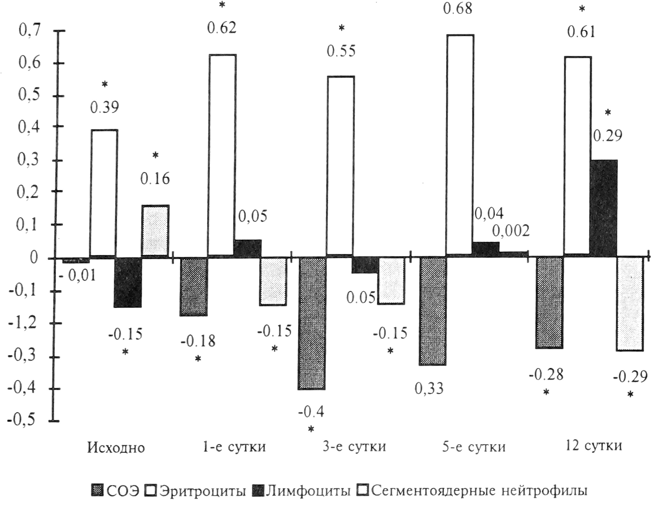 Эритроциты | х1012/л | 4.5±0.3 | 4.2±0.3 | 3.9±0.2 | 3.9±0.3 |
