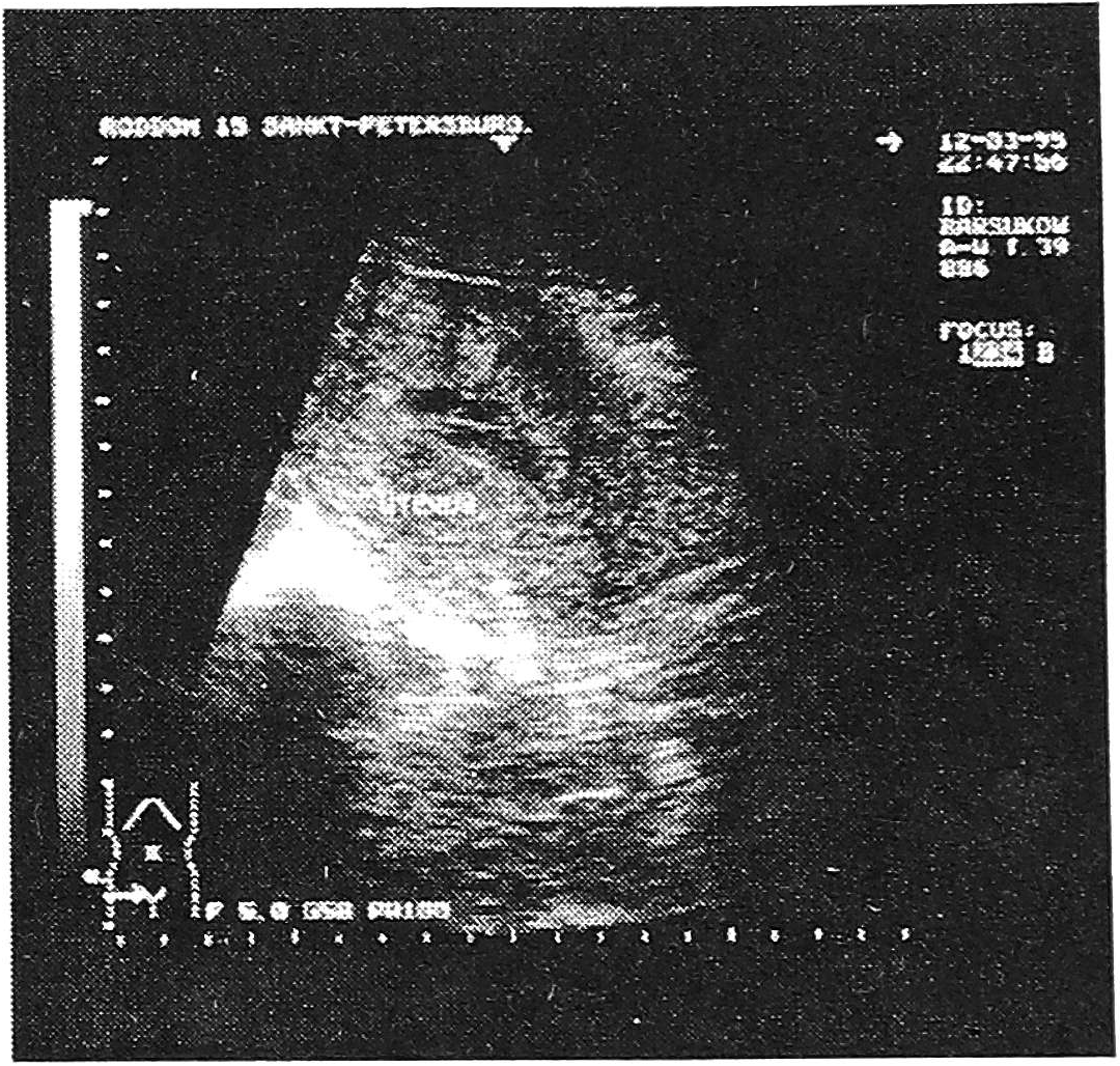 В данном случае при ультразвуковом исследовании определяется расширенная полость, содержащая небольшое количество сгу-