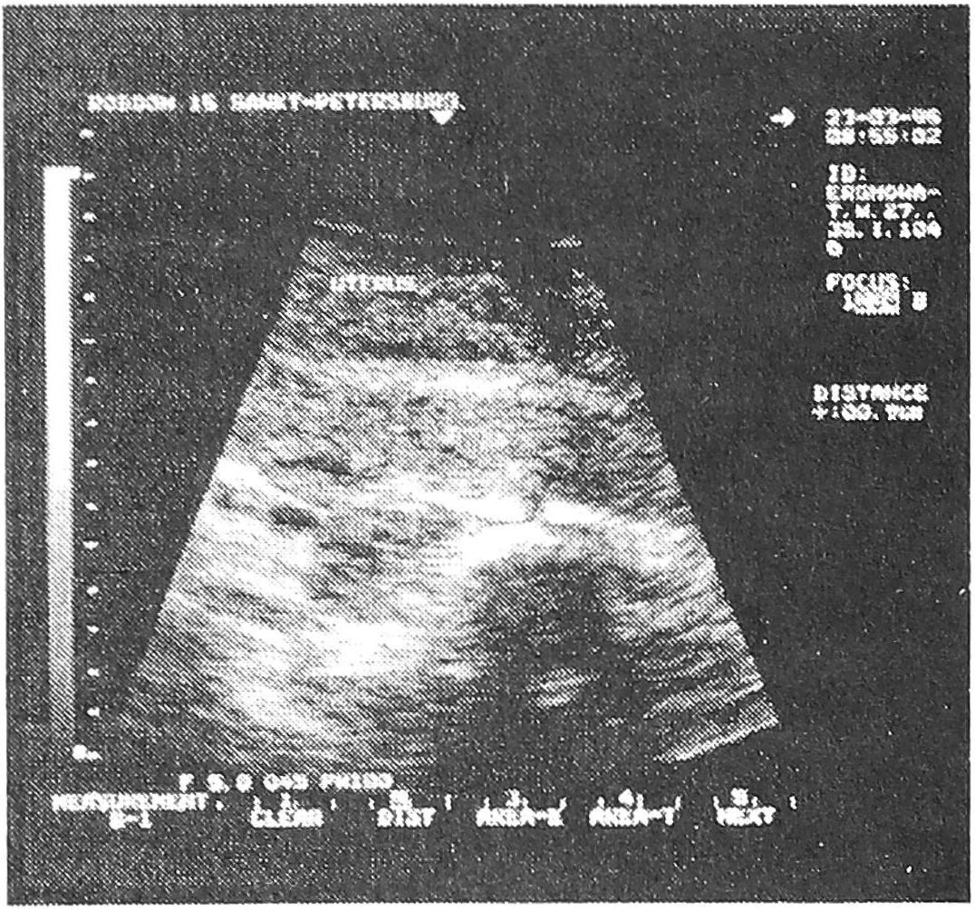 С целью выявления ранних эхографических признаков послеродовых осложнений, проводилось обязательное обследование родильниц со 2-го по 7-й день послеродового периода (ультразвуковое исследование выполнялось на аппарате фирмы Aloca, SSD - 620).