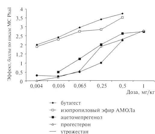 Исследование гестагенной активности на инфантильных крольчихах-самках (тест ClaubergMcPhail) показали, что изученные соединения способны вызвать значительные секреторные (прегравидные) изменения в эндометрии эстрогенподготовленных животных.