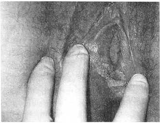 Обширные экзофитные кондиломы в области входа во влагалище представлены на рис. 4, 5. В первом случае (рис. 4) макроскопически видны кондиломатозные разрастания в области задней спайки с переходом на слизистую малых половых губ, больше справа.