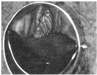Рис. 4. Кондиломатозные разрастания в виде «цветной капусты» в области задней спайки