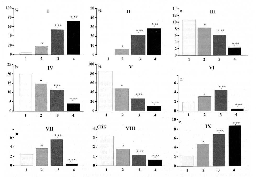 * — достоверные изменения относительно группы 1, р < 0,05;