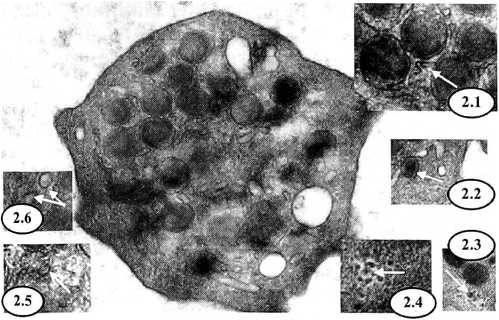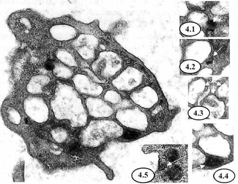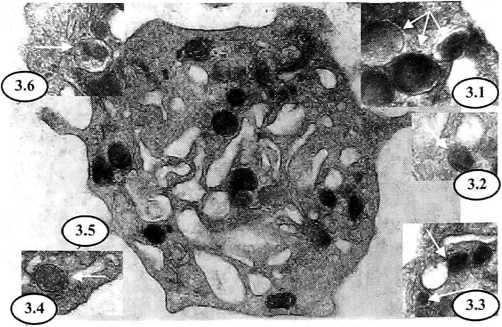 3.4 и 3.5 — цитоплазматические мембранные включения (варианты) возле ПВС (×65000 и ×50000);