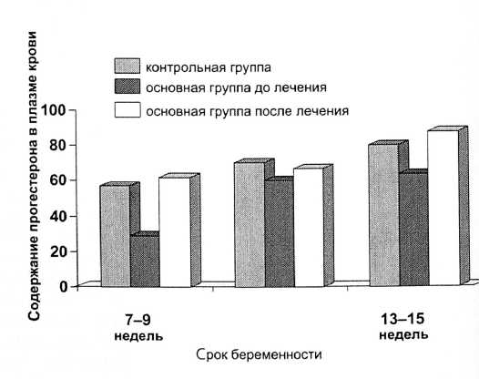 Рис. Содержание прогестерона в плазме крови беременных с угрозой прерывания после лечения дюфастоном