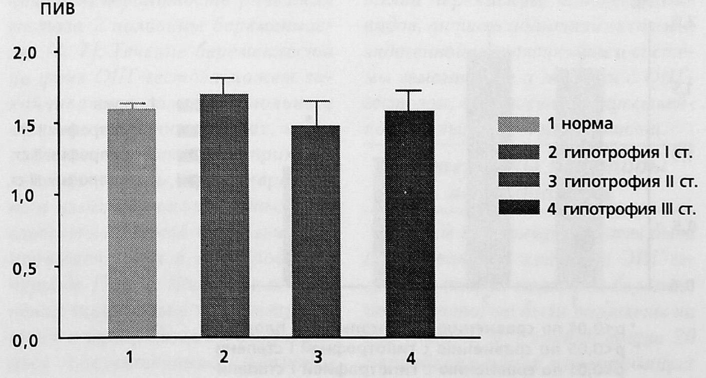 4р < 0, 05 по сранвению с гипотрофией I степени;
