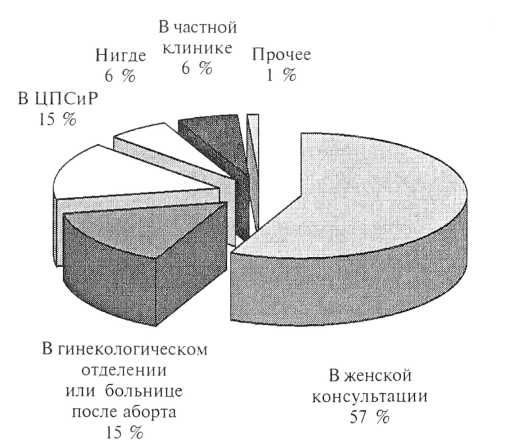 По специально разработанным анкетам проведен опрос 1162 женщин, решивших прервать беременность.