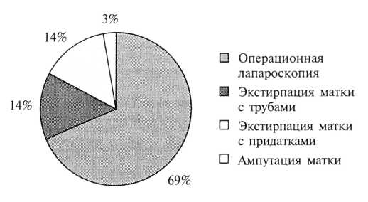 Синдром ХТБ наблюдался в клинической картине следующих гинекологических заболеваний: наружный генитальный эндометриоз 1-й стадии диагностировался в 22 случаях (30,6±5,4%), 2-й стадии — в 9 (12,5±3,9%), 3-й стадии — в 1(1,4±1,4%), миома матки — в 27 (37,5±5,7%), аденомиоз — в 28 (38,9±5,7%), синдром Аллена-Мастерса — в 17 (23,6±5,0%), хронический сальпингоофорит — в 13 (18,1±4,5%). Первичным бесплодием страдали 11 женщин (15,3±4,2%), у 7 (9,7±3,5%) бесплодие было вторичным. У двух пациенток (2,8±1,9%) гинекологических заболеваний выявлено не было (одна обратилась с целью стерилизации, другой был поставлен диагноз вегетоганглиопатия и назначена консервативная терапия). Количество гинекологических заболеваний у одной пациентки в среднем составляло 1,6. При тщательном обследовании нервной, мочевыводящей и эндокринной систем, а также опорно-двигательного аппарата Экстрагенитальные причины боли были исключены.