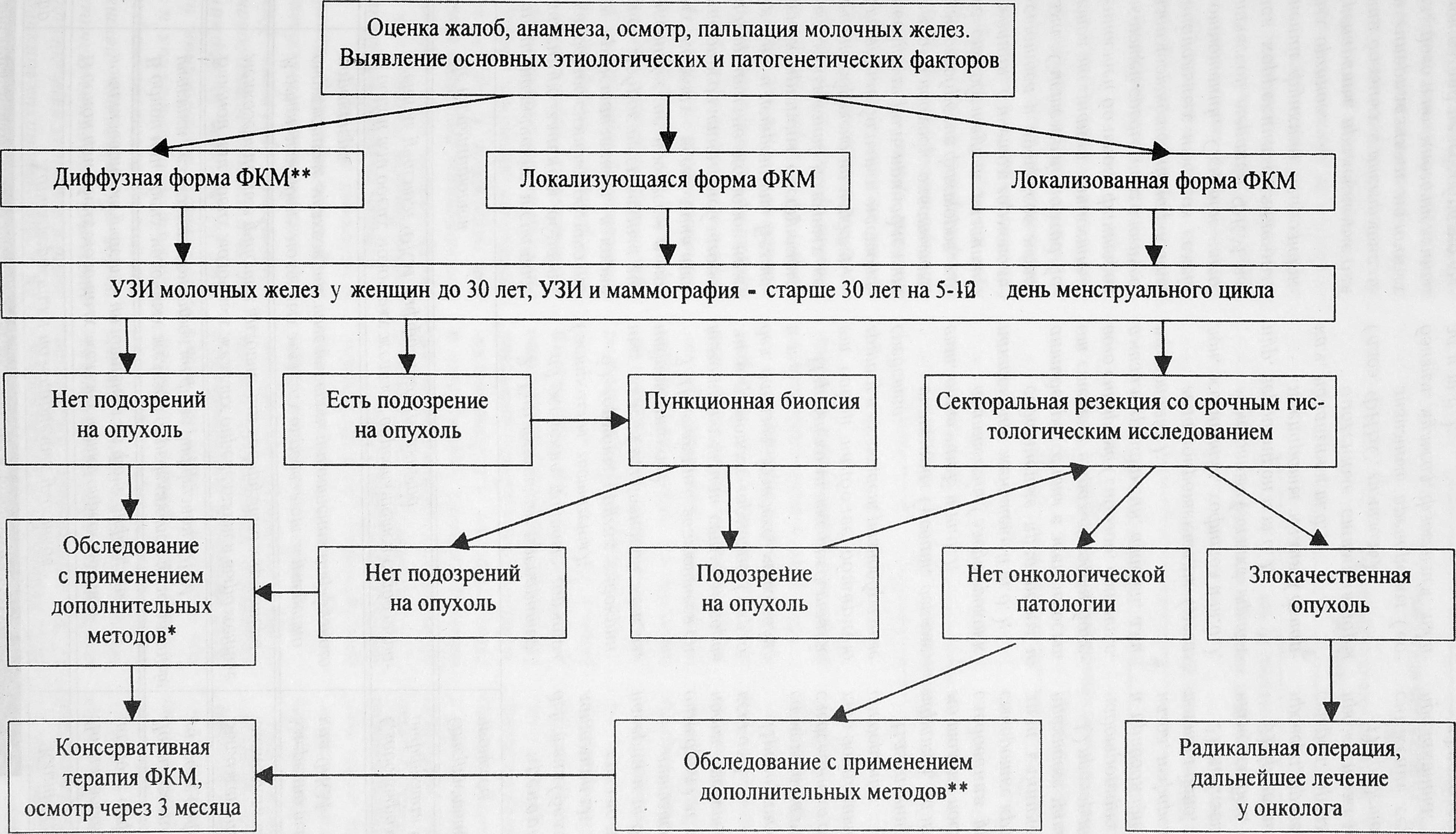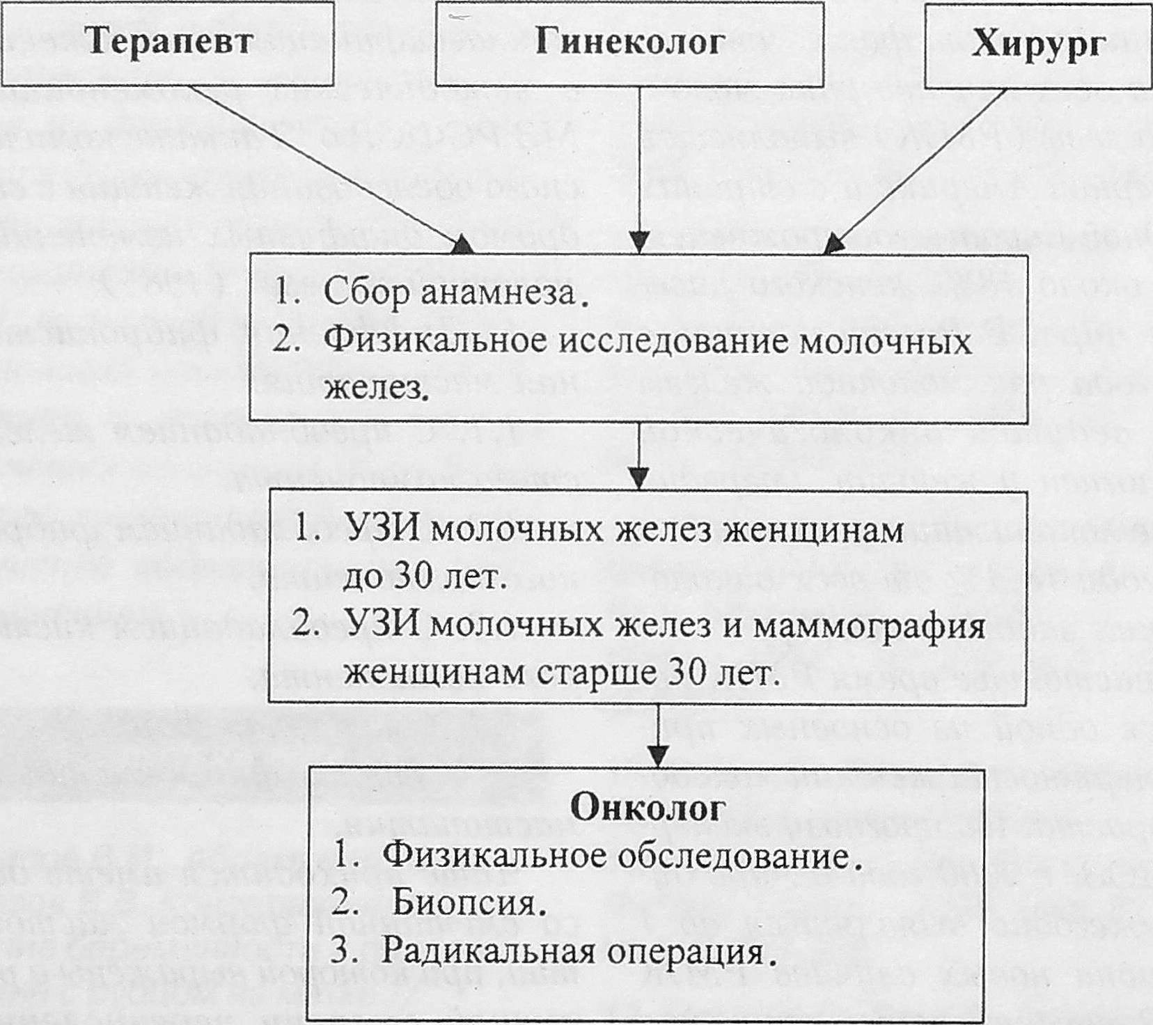 Схема 2. Алгоритм обследования женщин с заболеваниями молочных желез.