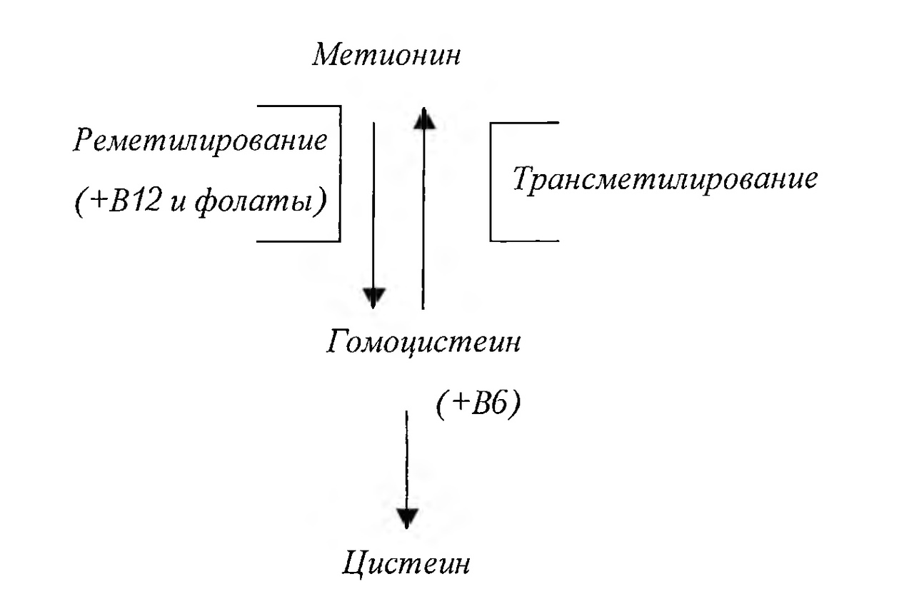 Повышение уровня гомоцистеина-гомоцистеинемия (гипергомоцистеинемия) может быть связана с наследственным дефицитом ферментов, обеспечивающих ресинтез метионина и метаболизм гомоцистеина. Приобретенная гипергомоцистеинемия-это результат влияния разных факторов-дефицита витаминов Вб, В12, фолатов; гипертонической болезни, влияния тех или иных медикаментов и, наконец, старшего возраста с длительной постменопаузой.