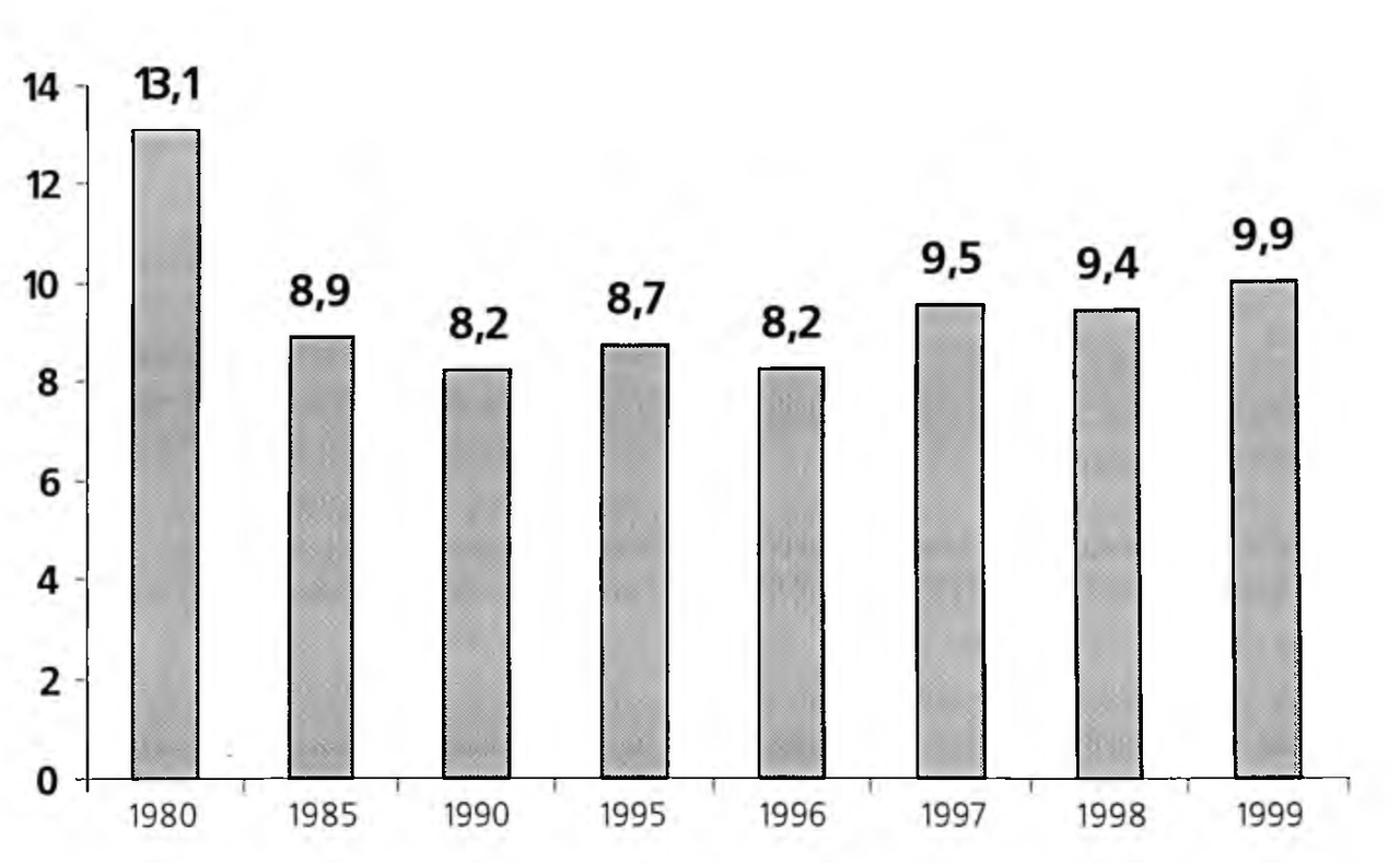 1995 | 61,0 | 24,7 | 8,4 |