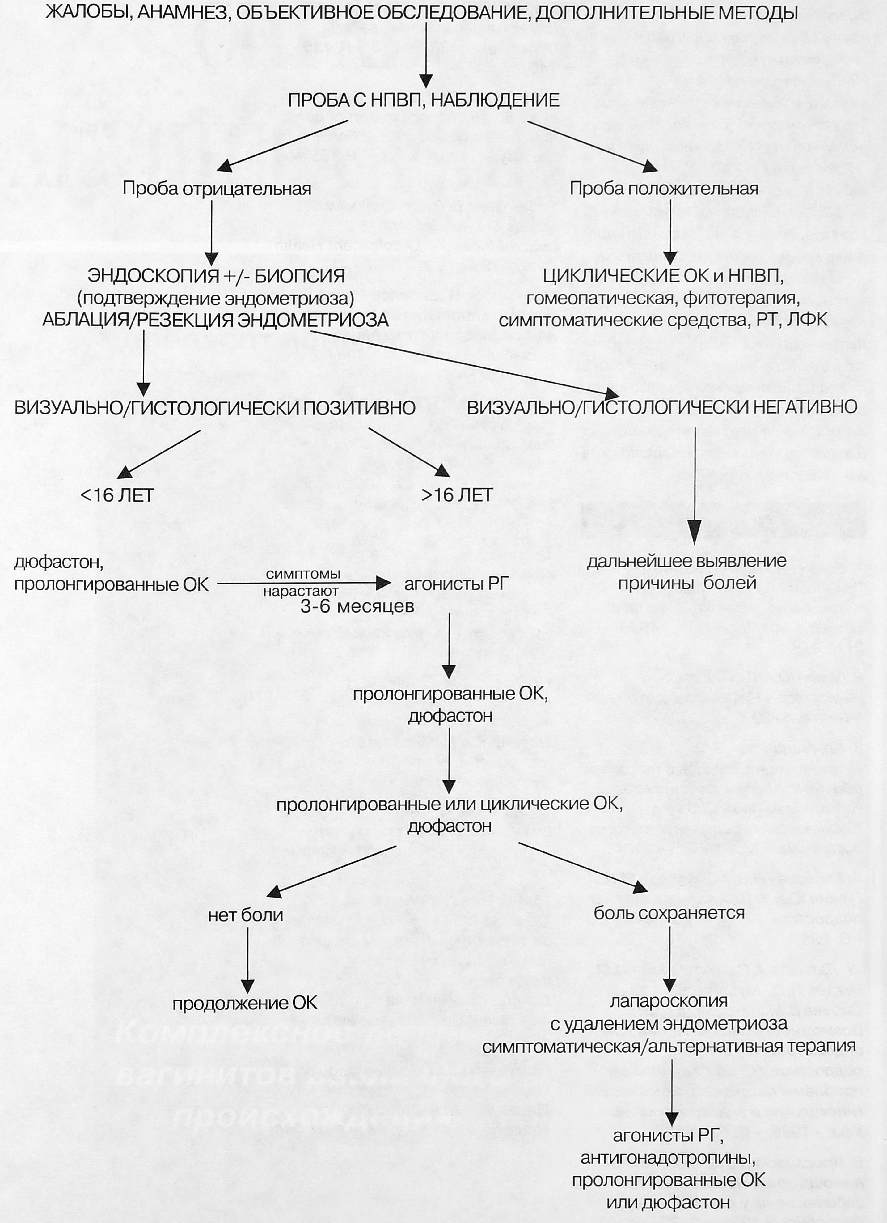 Следует отметить, что у большого числа девочек-подростков причиной дисменореи является эндометриоз. Результатом многочисленных исследований явилось утверждение, что эндометриоз - причина хронических тазовых болей у 70% подростков [13]. То есть эндометриоз является не только одним из наиболее частых гинекологических заболеваний и причиной бесплодия в репродуктивном возрасте, но и причиной тяжелых страданий и дисменореи у подростков. Это заболевание всех этнических и социальных групп [10]. При этом эндометриоз считается заболеванием, верифицируемым хирургически [16]. Это положение касается и подростков. Именно при исследованиях, проведенных среди девочек- подростков, страдавших хроническими тазовыми болями, не снимавшимися оральными контрацептивами и нестероидными противовоспалительными средствами, подвергнутых лапароскопии, эндометриоз диагностирован у 45 - 70% [11, 12]. Частота эндометриоза у подростков, страдающих тазовыми болями, увеличивается с возрастом - от 12% в 11 - 13 лет до 54% в 20 -21 год. С учетом генетической предрасположенности следует подозревать эндометриоз у подростков с соответствующей симптоматикой при подобной наследственности. Так же, как и относить к группе повышенного риска по развитию эндометриоза девочек с пороками развития урогенитального тракта.