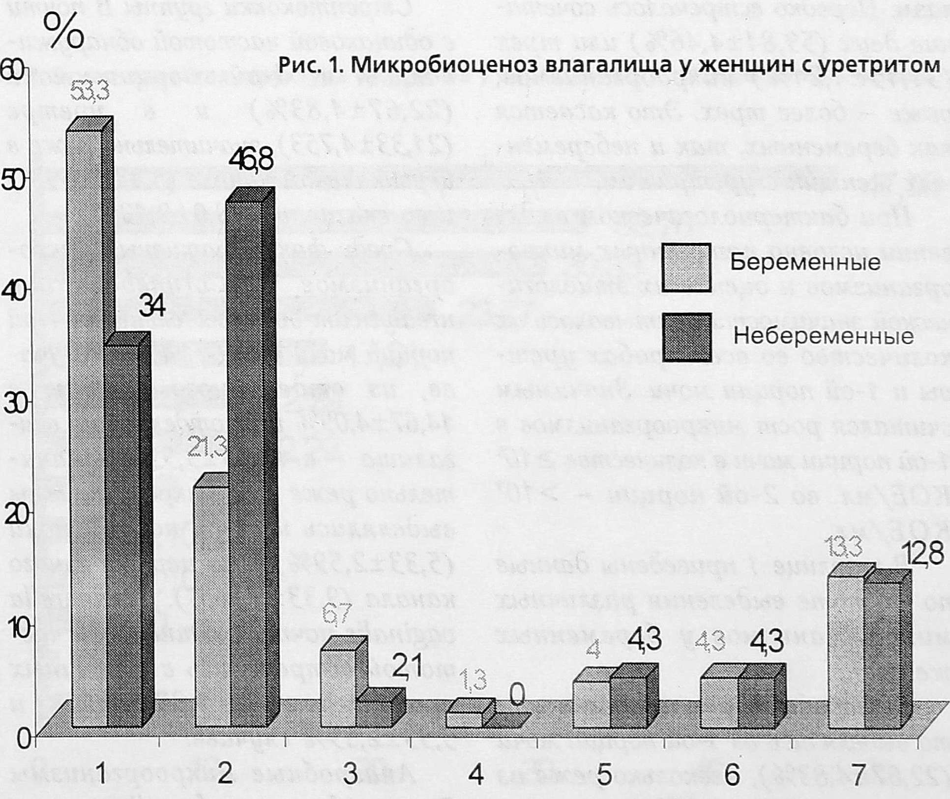 Рис. 1. Микробиоценоз влагалища у женщин с уретритом.