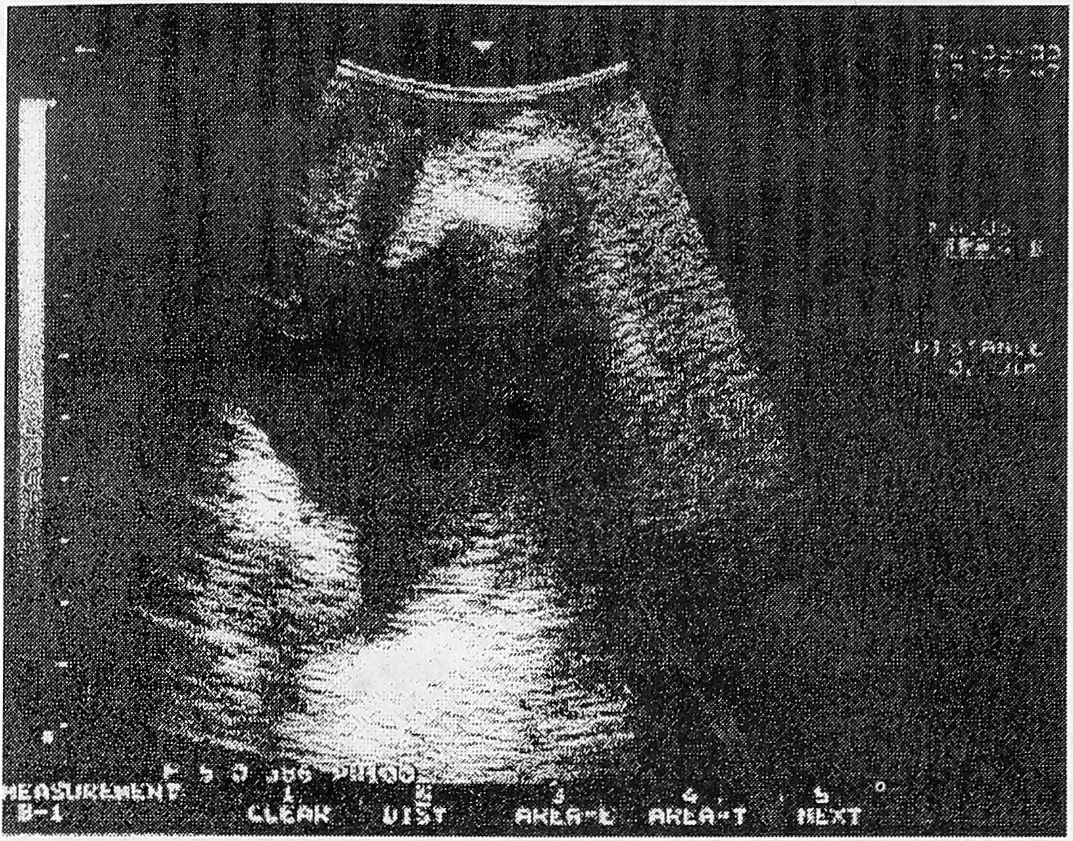 Рис. 4. УЗ-сканирование мочевого пузыря у женщины с острым циститом.