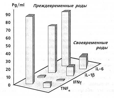 Рис. 2. Сывороточные уровни цитокинов у беременных в III триместре с последующим развитием преждевременных и своевременных родов