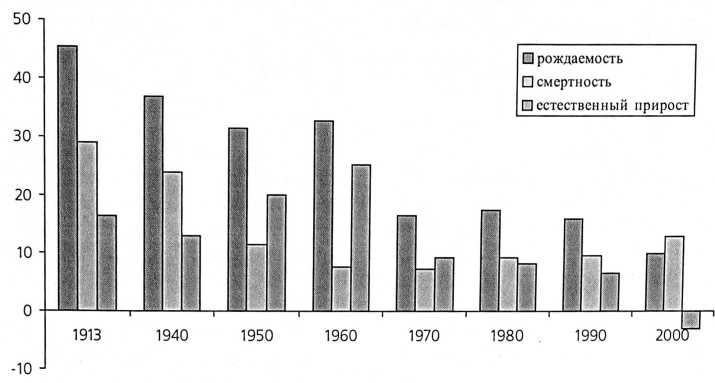 Острота депопуляции формируется не только за счет сужения базы воспроизводства (низкой рождаемости), но и, прежде всего за счет роста общей смертности (рис. 2).